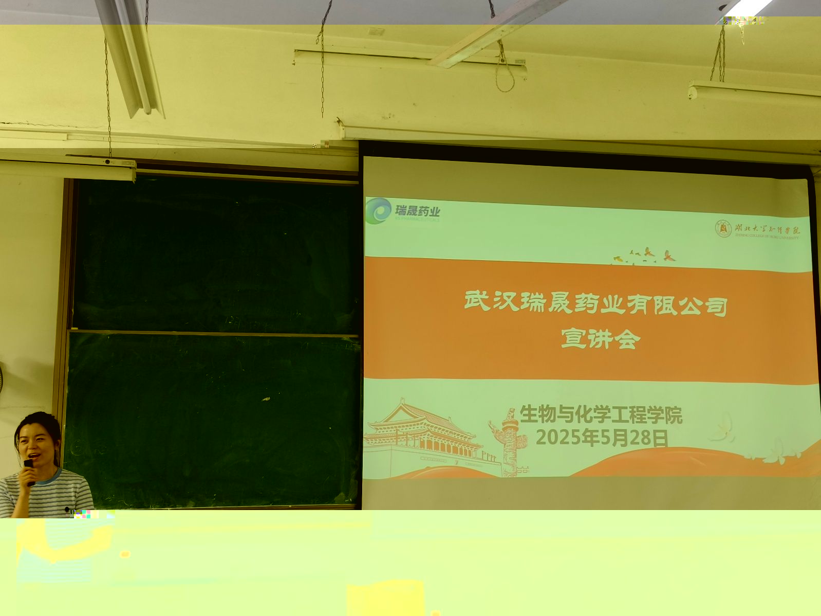 2025年5月28日下午,生化學院邀請武漢瑞晟藥業有限公司在四教110成功舉辦了宣講會。生化學院化學工程與工藝教研室主任任曉聰、應用化學教研室老師劉金雁及學院2022級化學類全體學生參會。瑞晟藥業有限公司人事部經理肖慧蓉女士擔任本次宣講會主講人。