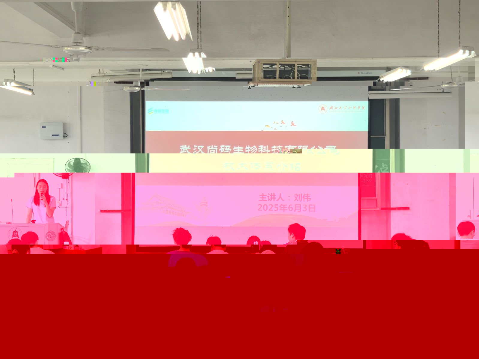 為搭建技術實踐與職業發展的橋梁,助力技術創新與人才培養,2025年5月23日,生化學院與武漢尚碼生物科技有限公司聯合舉辦專場招聘宣講會。本次活動由副院長鐘星主持、劉偉經理主講,參與人員有院長盛希群及22級學生。