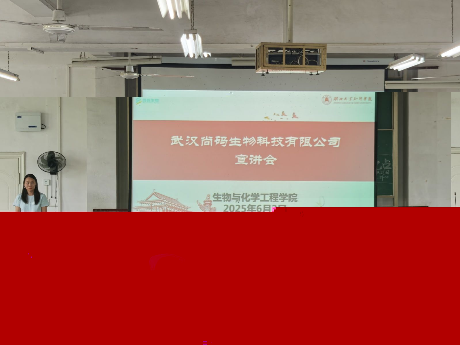 為深化校企合作、拓寬畢業生就業渠道,2025年6月3日,生化學院攜手武漢尚碼生物科技有限公司,為22級學生舉辦了一場别開生面的招聘宣講會。本次活動由副院長鐘星主持,院長盛希群、主講人劉偉經理及22級全體學生參與,為生化學子搭建了與行業企業直接對話的橋梁。